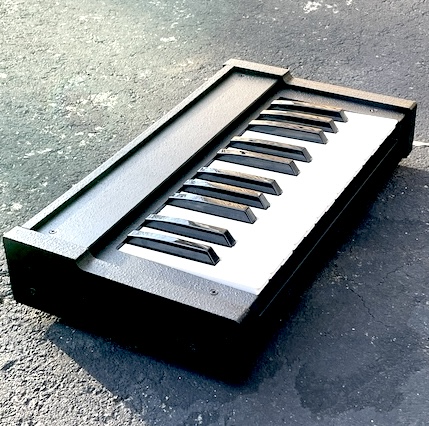 My client wanted the keyboard to be black, and wanted the entire texture to mimic the original Wilgamat side panels. To achieve this, I first spray painted the keyboard with Stone-Fleck, and then went over the textured finish with black paint. I also CNC cut the keyboard body to loosely follow the shape of the original keyboard that was used with the Wilgamat III.
