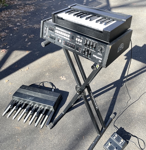 I shipped the Wilgamat, the bass pedals, and the new keyboard to England in three big boxes. It was very expensive to ship. Unfortunately, the main Wilgamat unit had a rough journey, and needed a little bit of mending upon arrival. Luckily my client is skilled with a soldering iron, so we were able to troubleshoot across the pond to get everything remedied. It’s still 120VAC, so it’s being powered through a step-down transformer.